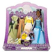 As sparkling as the blue bayou, the Deluxe Tiana Doll and Wardrobe Play Set is perfect for dazzling dress-up fun. Lovely Tiana has four costumes that allow you to recreate all of her adventures in Disney's The Princess and the Frog.